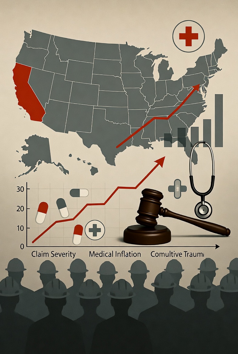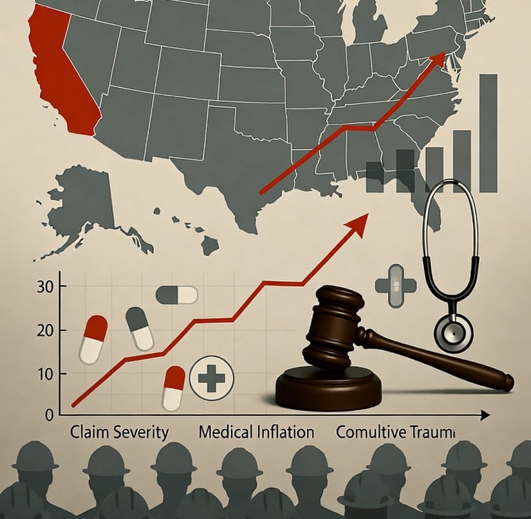 After a period of steadiness, medical costs are surging from various angles. California's average indemnity claim hit nearly $80,000 in 2024, altering the risk profile for all involved.